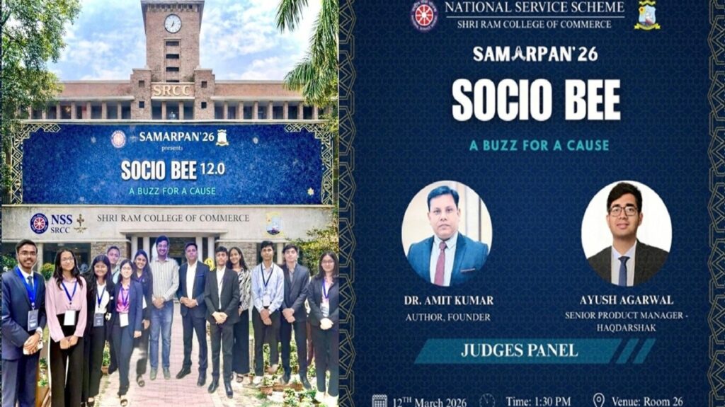 I recently had the honour of being invited as a Judge for Socio Bee 12.0 at Samarpan’26, the annual event of the National Service Scheme (NSS), Shri Ram College of Commerce (SRCC). What I expected to be a formal academic engagement turned out to be a deeply inspiring and humbling experience – one that stayed with me long after I left the campus.